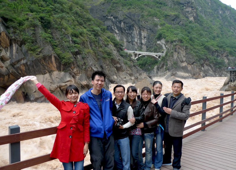 虎跳峡,中国最深的峡谷之一。在云南省玉龙纳西族自治县(原丽江纳西族自治县)龙蟠乡东北。峡谷长16公里,南岸玉龙雪山主峰海拔5,596米,北岸中甸雪山海拔5,396米,中间江流宽仅30∼60米。虎跳峡的上峡口海拔1,800米,下峡口海拔1,630米,两岸山岭和江面相差2,000∼3,000米,谷坡陡峭,蔚为壮观。江流在峡内连续下跌7个陡坎,落差高达170米,水势汹涌,声闻数里,为世界上最深的大峡谷之一。看我们的威尔逊“七勇士”!! |