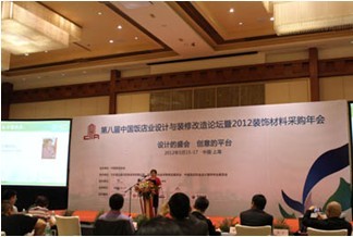 2012年5月15日至17日,由中国饭店协会设计装饰专业委员会主办,第八届中国饭店业设计与装修改造论坛暨2012装饰材料采购年会在上海盛大举行。大会邀请了众多知名专家,展示最新低碳环保酒店、精品酒店、文化主题酒店、度假会议酒店以及特色餐馆等设计案例;探讨未来酒店设计的流行趋势;饭店节能降耗及改造成本控制;新技术、新材料及新设备的应用等主题展开研讨。