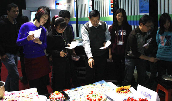 待各组作品呈上作品席后,由谢总、钟总、孙总、陈总四大评委从制作速度、场地卫生、作品制作成本、饺子与蛋糕的外观和创意,以及照片人物特写效果等方面进行评分,最后一致评定由实力强大的“先锋队”制作色香味俱全且创意十足的作品胜出。
