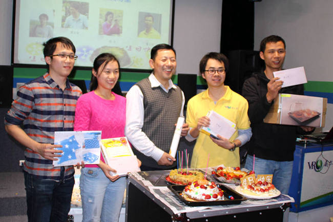 比赛过后大家热情依然高涨,活动至此怎能结束!紧接着生日祝福音乐的响起,第四季度生日的同事逐一被请至镁光灯下,受赠礼物、向蜡烛许愿、切开亲手制作的蛋糕和接受大家的真挚祝福。