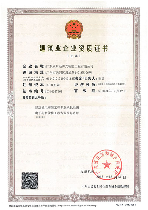此次两项工程资质的取得,标志着我司在工程领域的新升级,不仅为公司开拓建筑机电安装和电子与智能化工程市场打开局面,而且进一步拓宽了业务范围,进一步增强了我司的知名度,大大提高公司的竞争力,使公司在对外经济交往中增加了一张亮丽的名片!